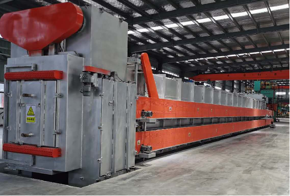 4、工件的進(jìn)料與出料在設(shè)計(jì)同一位置,為階梯設(shè)計(jì),方便操作。鎖氣室與進(jìn)出料臺(tái)中間配余熱烘干室,烘干工件減少水汽進(jìn)入爐內(nèi),減少工件脫碳氧化,同時(shí)達(dá)到節(jié)能效果。